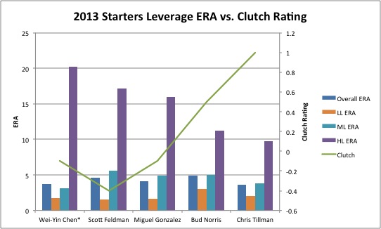 Looking closer into the current starters leverage ERA vs. clutch rating can be seen below.