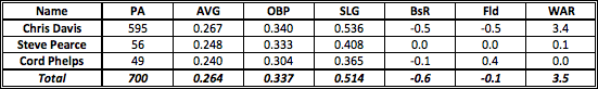 Baltimore first basemen produced 6.4 fWAR in 2013, which put them 1st in all of baseball. The mighty Chris Davis was worth 6.8 wins, but in the few games he didn’t play first base, his replacements contributed -0.4 wins in only 23 plate appearances. Zips sees Davis as being worth exactly half of what he was in 2013, which I also think is on the low side. I’m not saying that he’ll be an MVP candidate again, but I think he’ll be worth closer to 4 or 5 wins rather than 3.4.